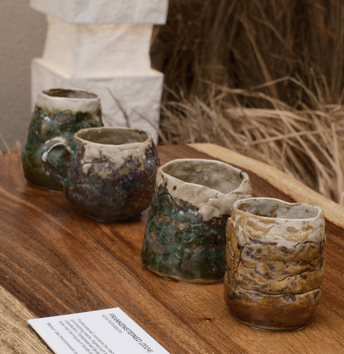 'Frankensteined' proclaims the intertwined state between mortality and breathing realms. Aligned with the nature of exploration and imperfection, Frankensteined Series was formed using the mixture of three traditional techniques in handbuilding: pinching, coiling, slabbing.